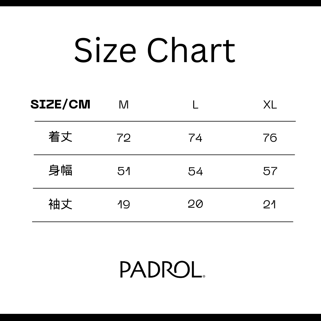 Size/cm M L XL 着丈 72 74 76 身幅 51 54 57 袖丈 19 20 21