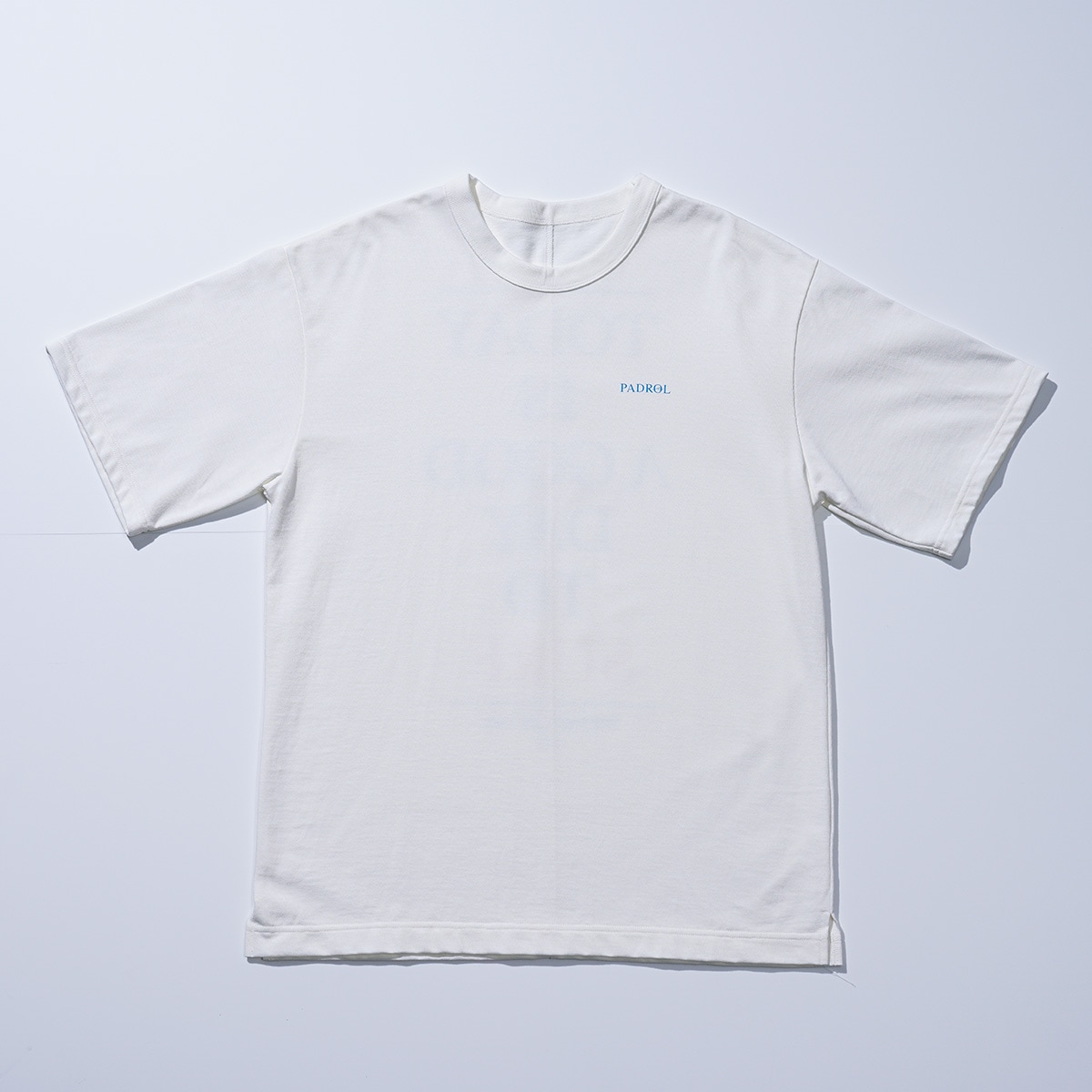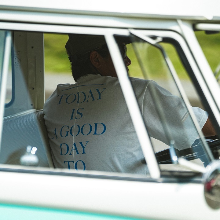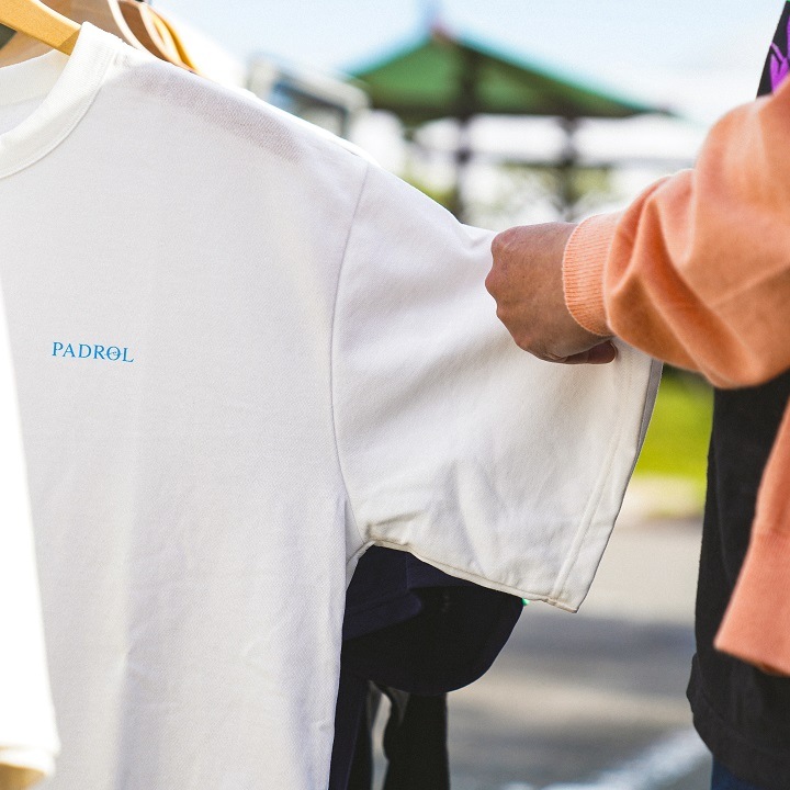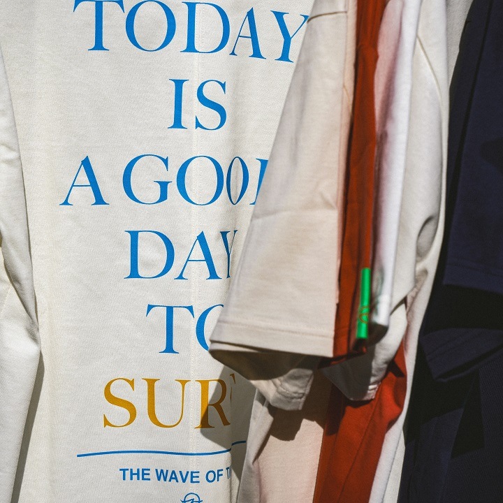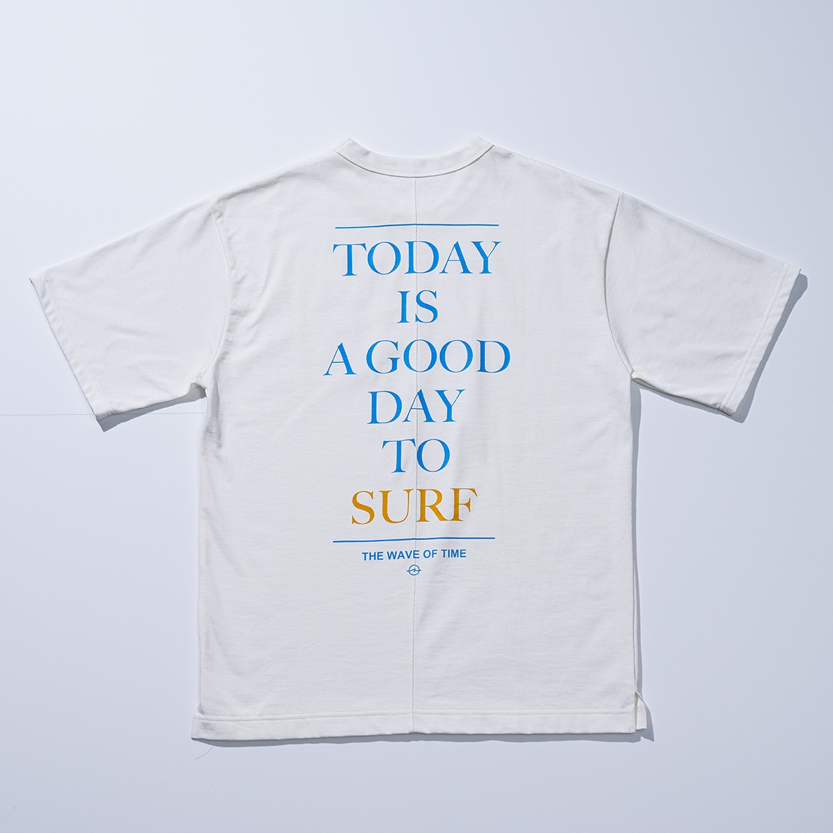 度詰めの天竺を使用し、見た目の美しさ、ハリコシ感、軽さの絶妙なバランスの取れた完成度の高い商品です。背中にはサーフィンを愛する人たちに向けたメッセージがプリントされています。背中のシームステッチもアクセントになっています。