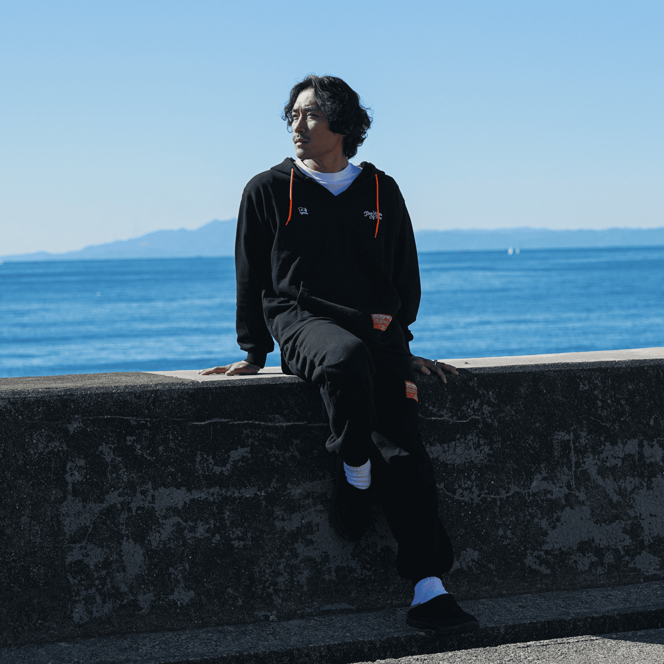 ストーンバイオ加工を施したポケット付きの裏毛のロングパンツ。リフレクター入りオレンジスピンドルとオレンジタグがアクセントになっています。