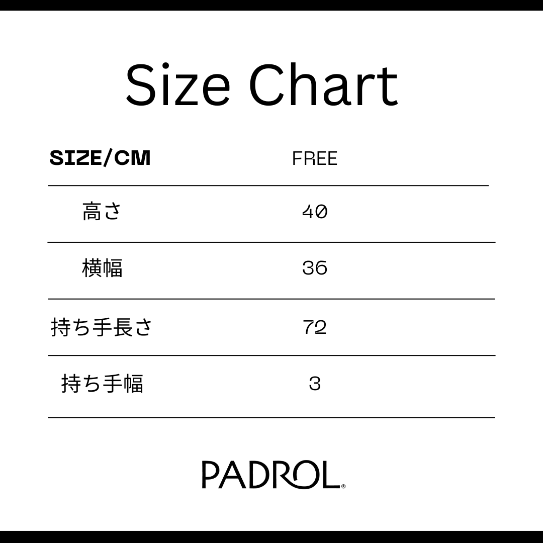 Size/cm Free 高さ 40 横幅 36 持ち手長さ 72 持ち手幅 3 - 原産国