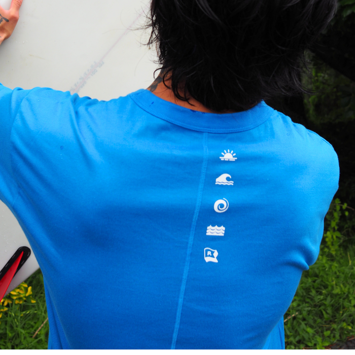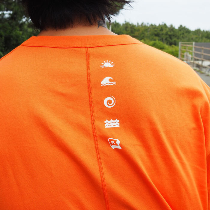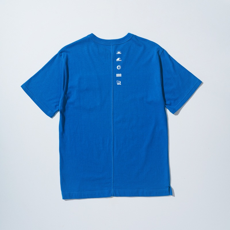 ”海”を色々なピクトグラム風モチーフで表現したバックプリントがポイントです。