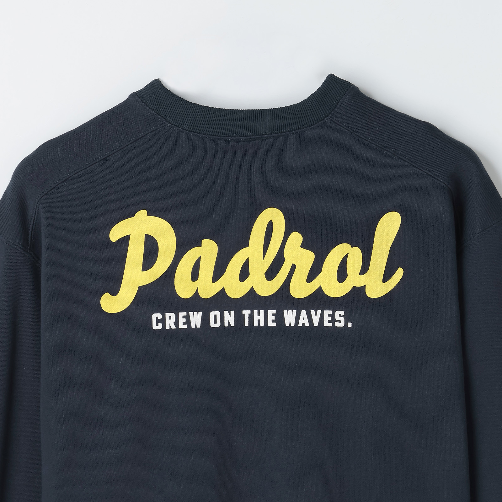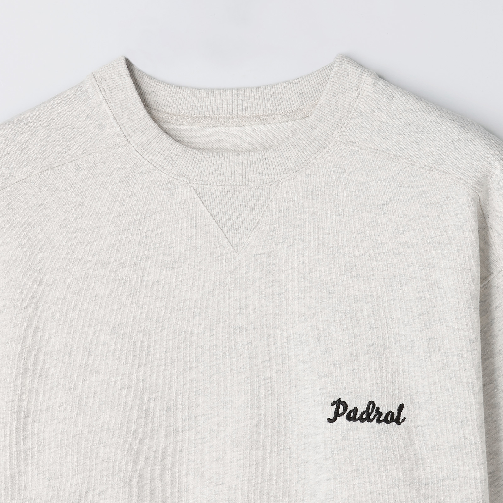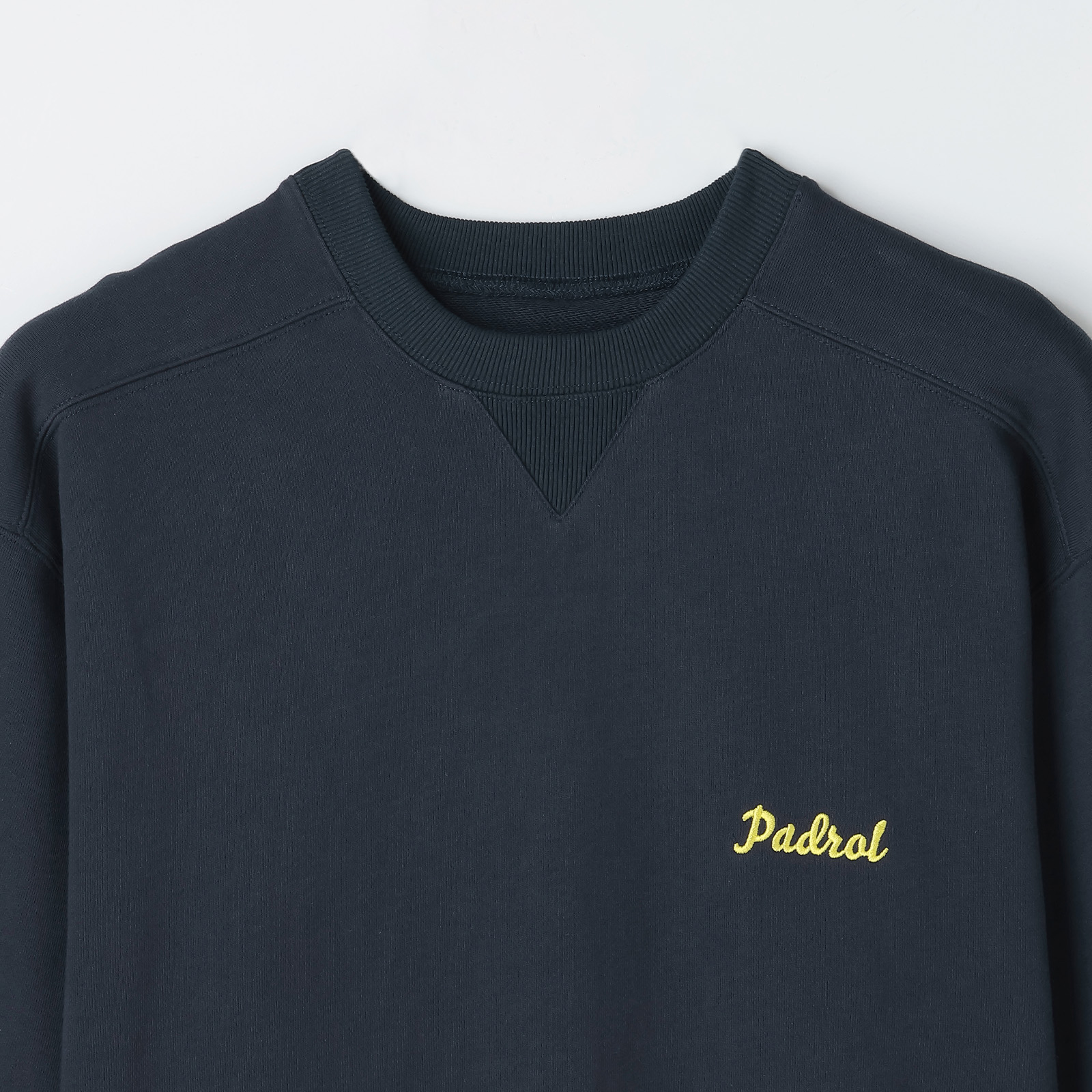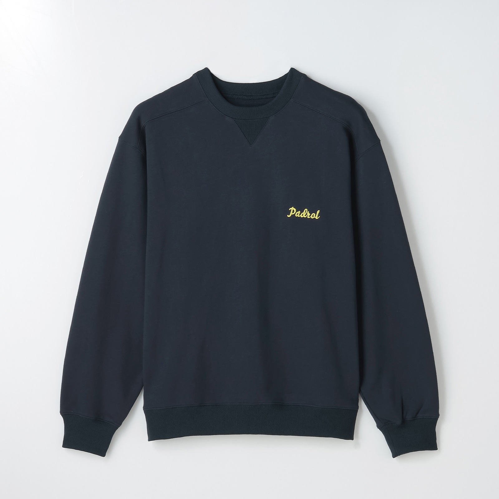 胸元に刺繍、背面には配色で大胆なプリントを施したクルーネックプルオーバー。