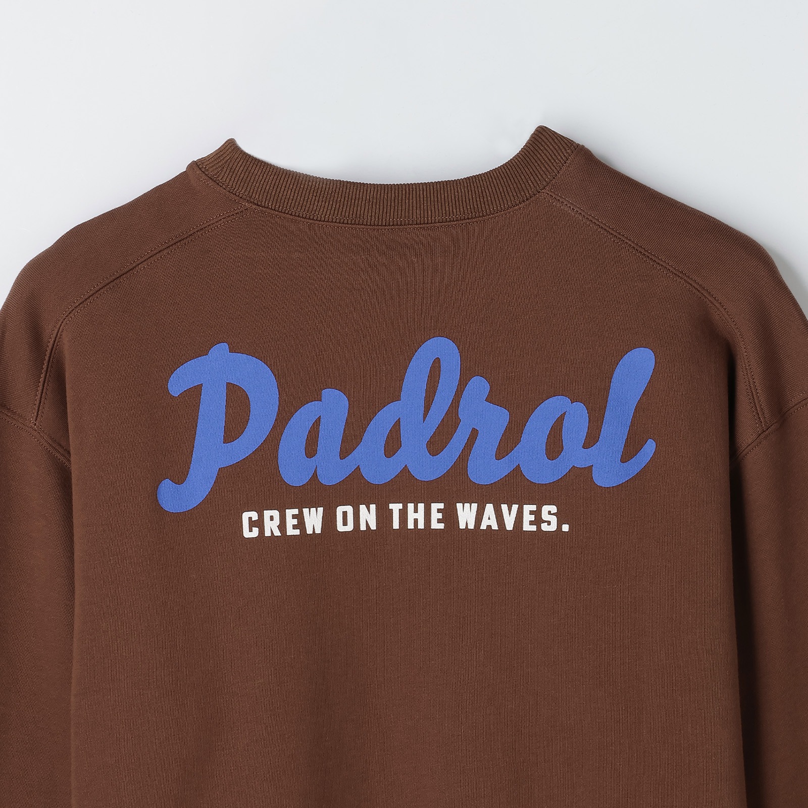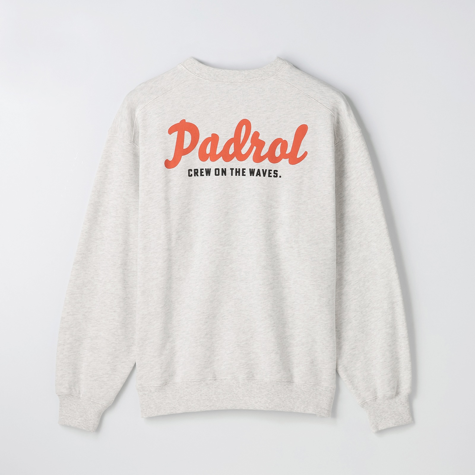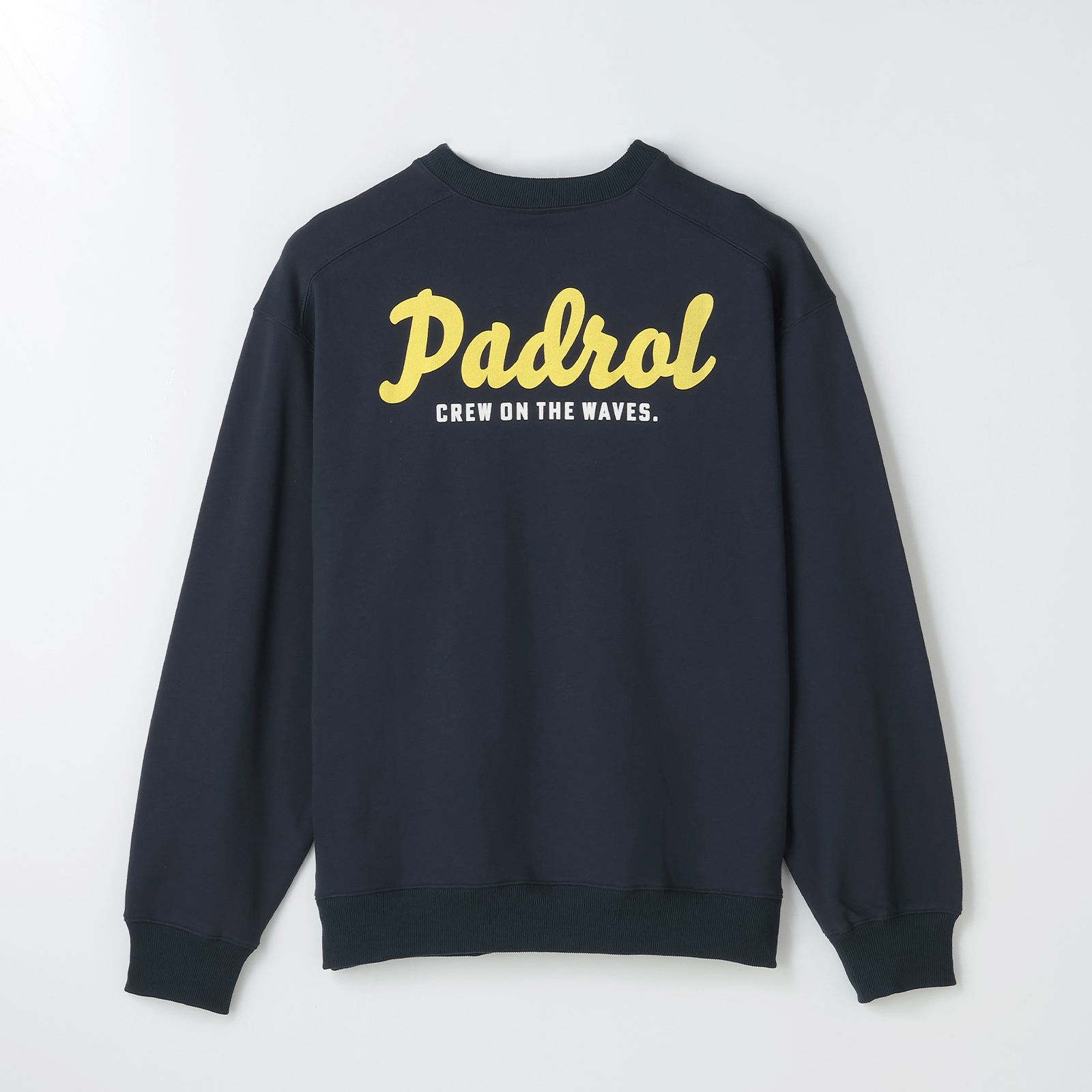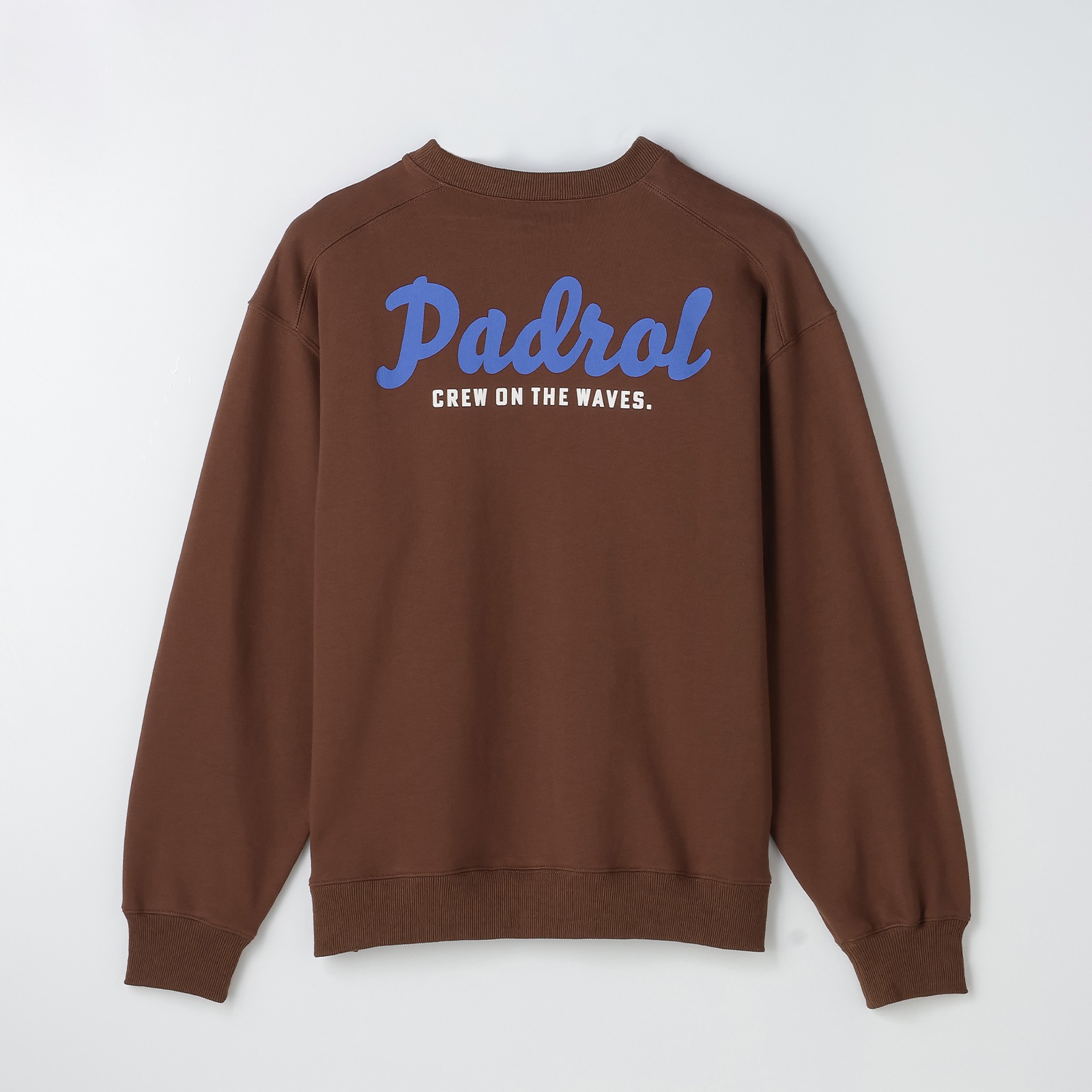 胸元に刺繍、背面には配色で大胆なプリントを施したクルーネックプルオーバー。