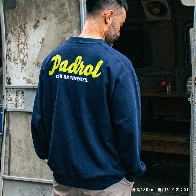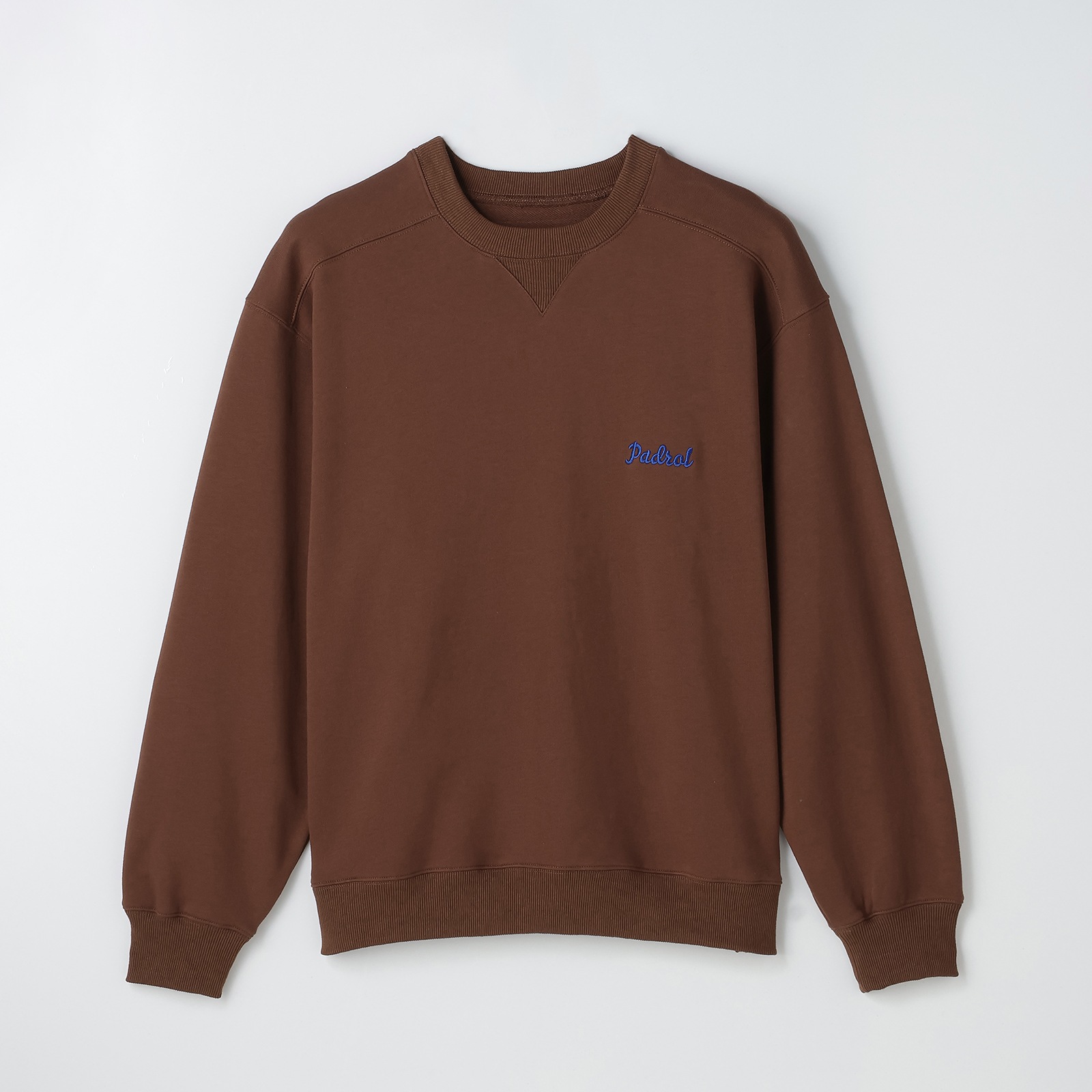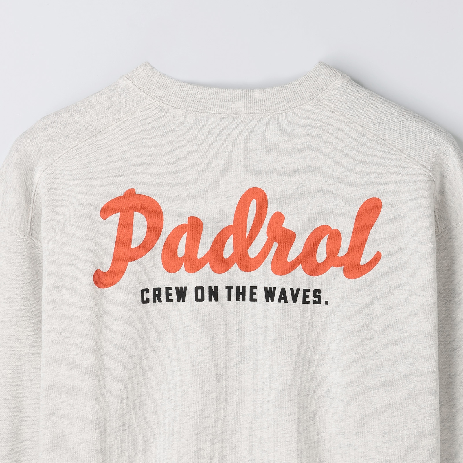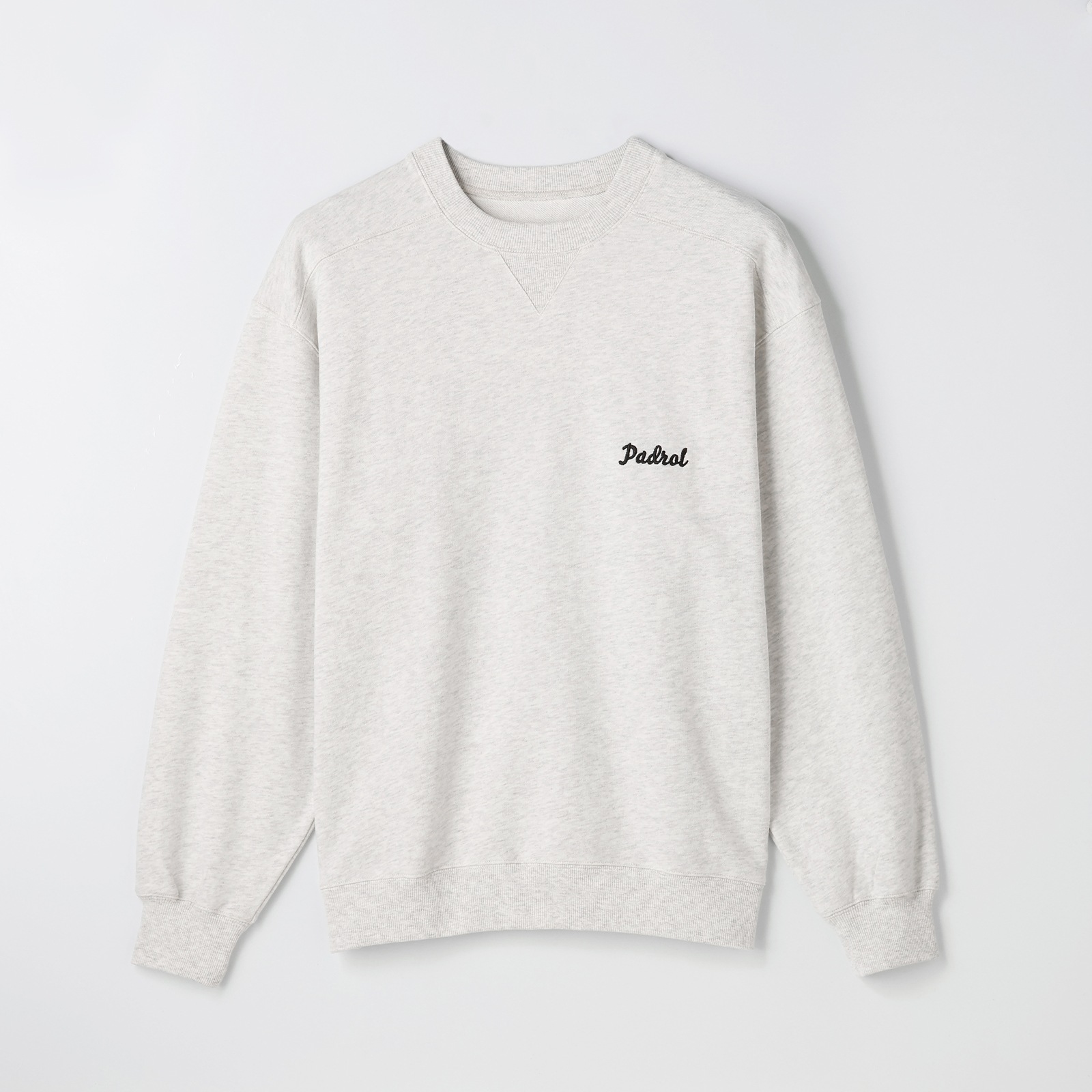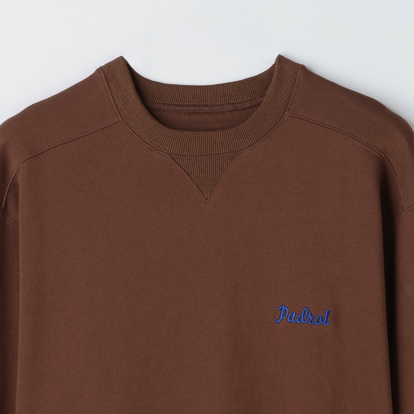 胸元に刺繍、背面には配色で大胆なプリントを施したクルーネックプルオーバー。