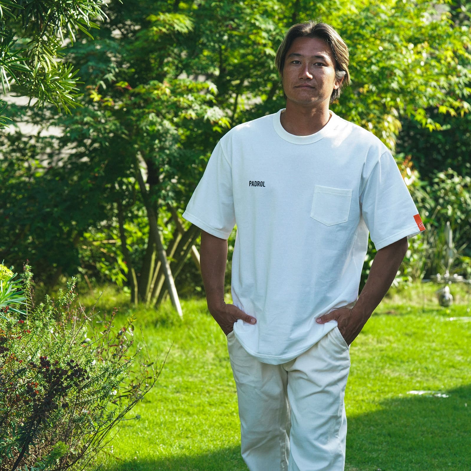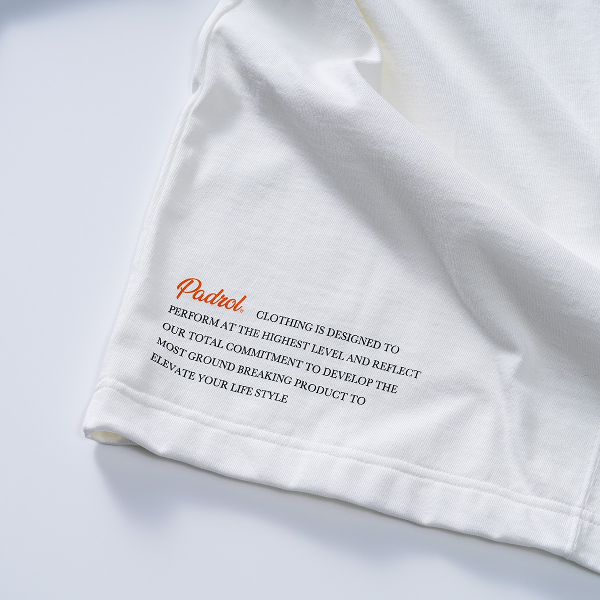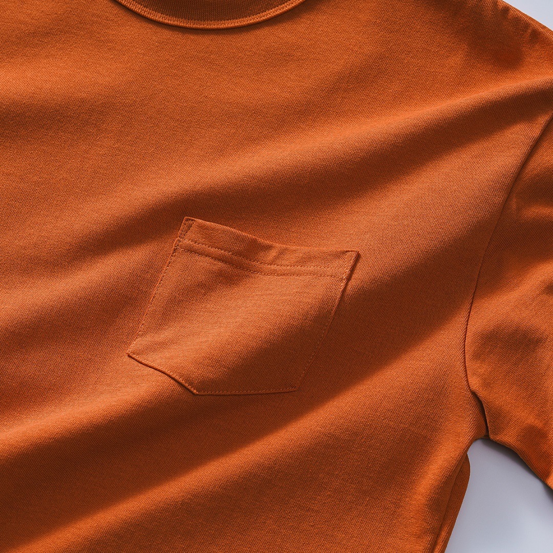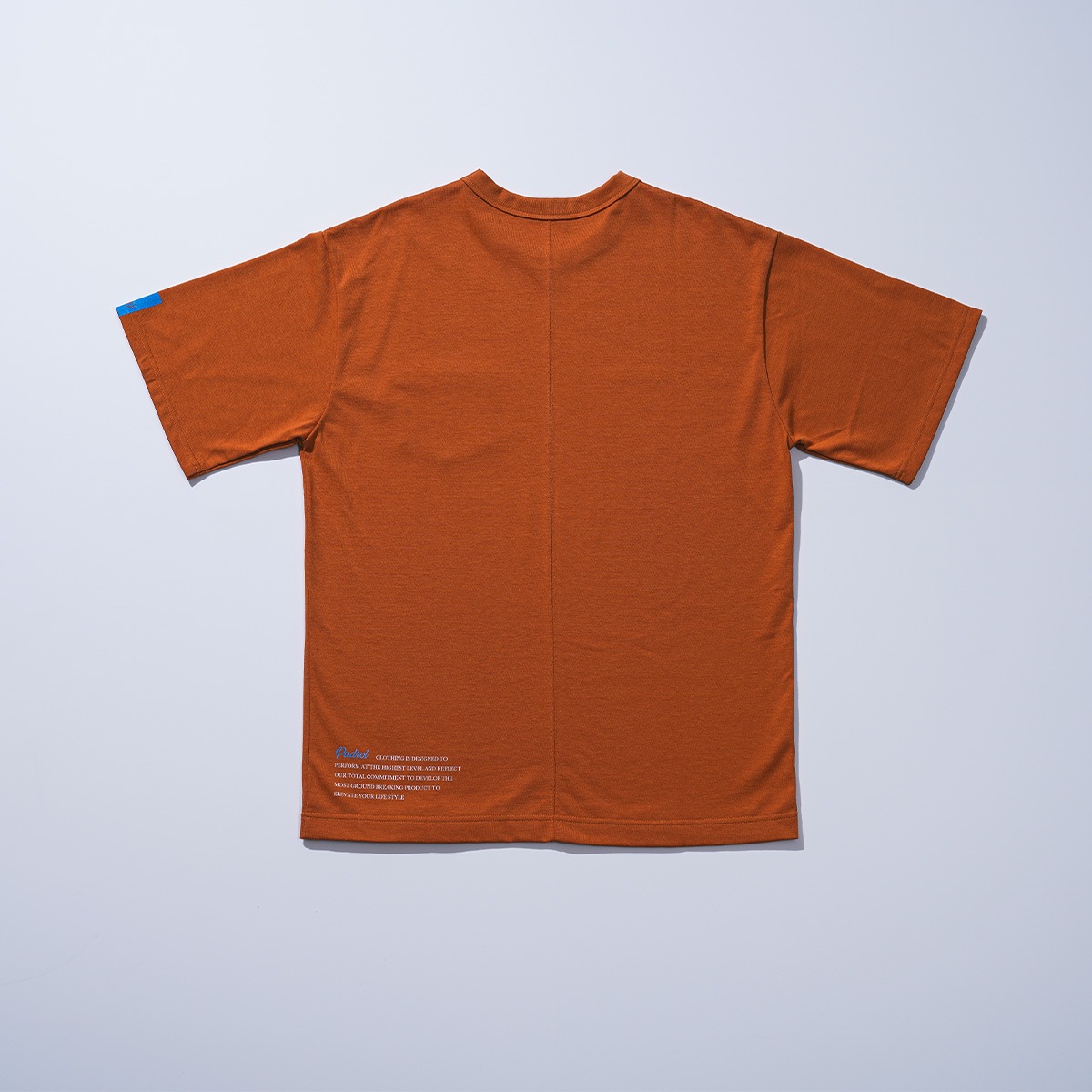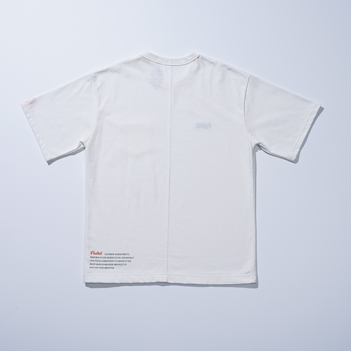 度詰めの天竺を使用し、見た目の美しさ、ハリコシ感、軽さの絶妙なバランスの取れた完成度の高い商品です。背中のシームステッチがアクセントになっています。