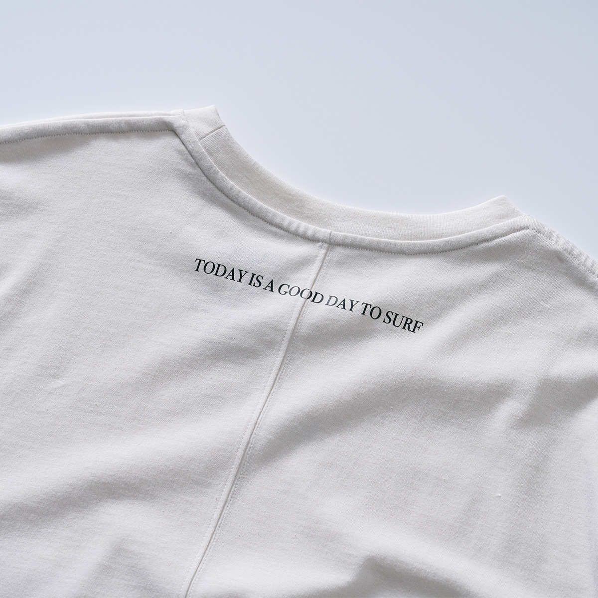 環境に配慮した染色整理加工を施したECO生地を使用し、シンプルで何にでも合わせやすいデザイン。背中のシームステッチがアクセントになっています。