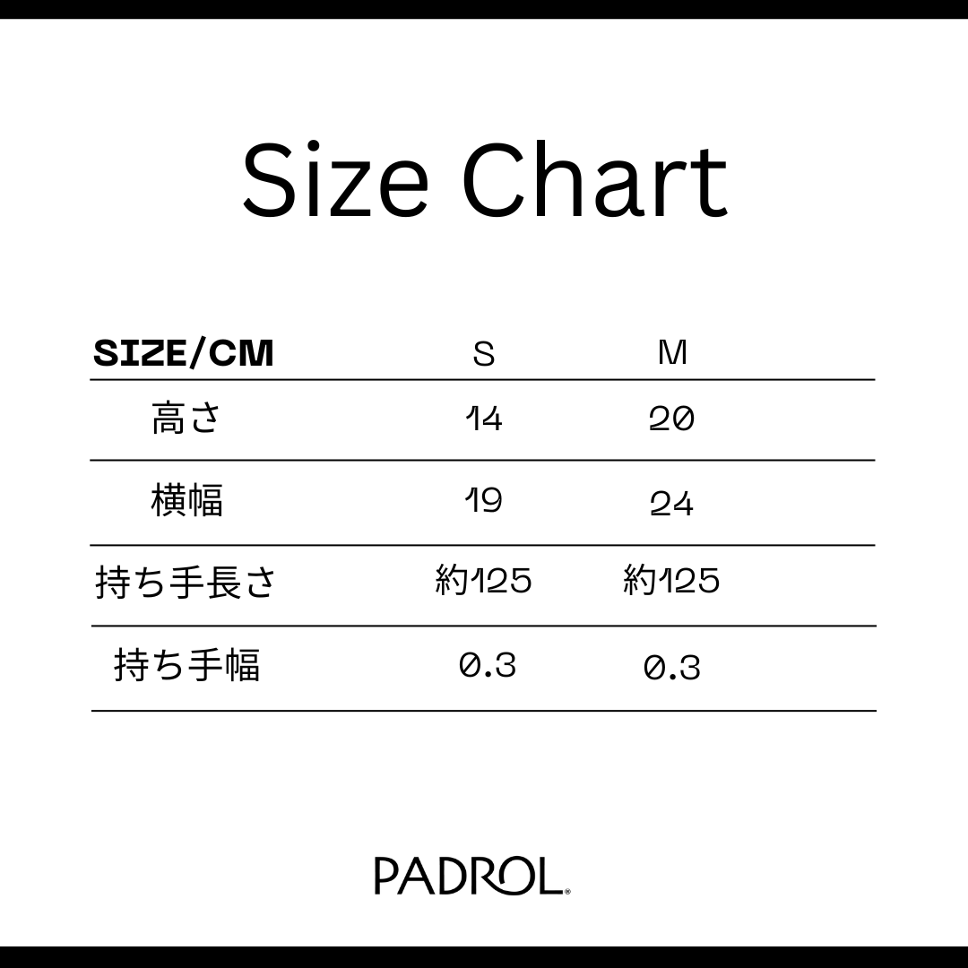 Size/cm S 高さ 14 横幅 19 持ち手長さ 約125 持ち手幅 0.3 - 原産国